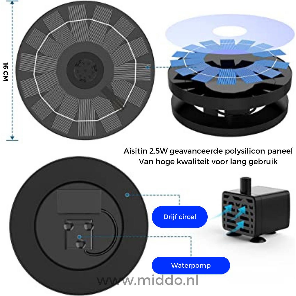 • 😇 Installation simple : Placez la Solar Oasis™ en plein soleil et voyez-la s'animer en seulement 3 secondes. La hauteur du jet varie entre 30 et 70 cm, selon l'intensité du soleil.